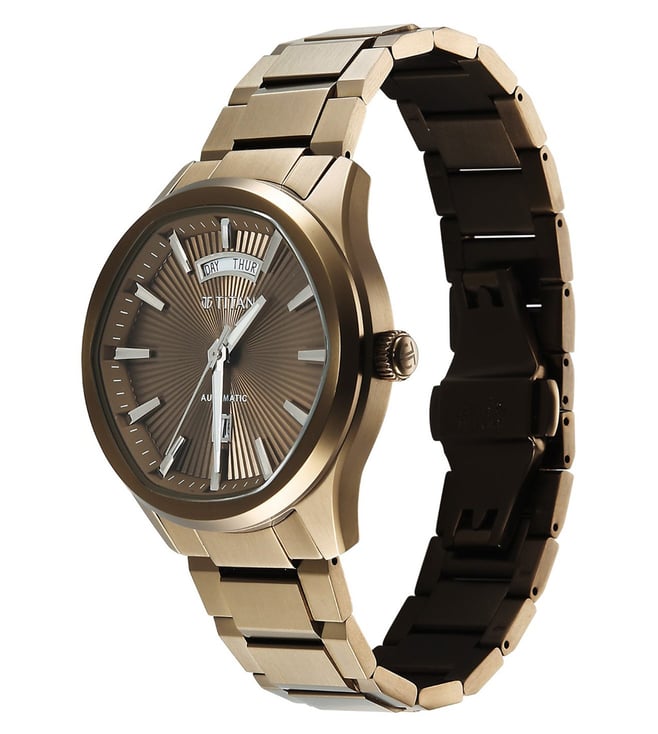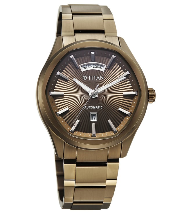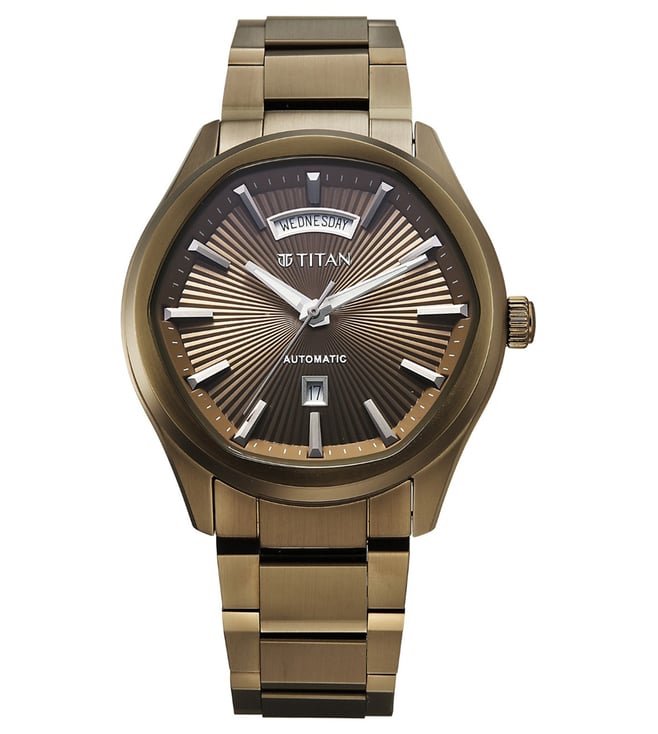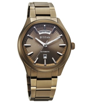 Titan Astral Concealed Automatic Analog Brown Round Dial Stainless Steel Watch for Men - 90209QM01