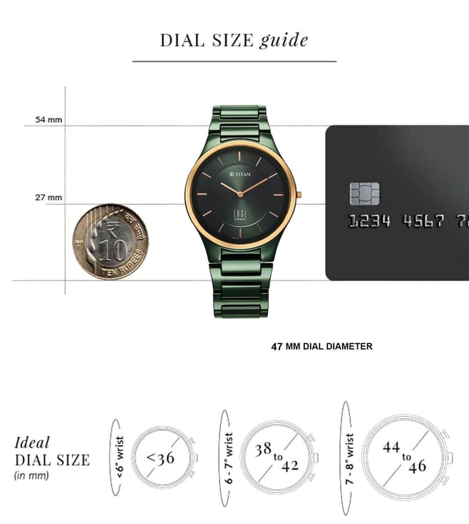 Introducing the Titan Edge Quartz Men 47 mm 1696KC10, a sleek and sophisticated timepiece designed for the modern man. With its slim profile and bold 47mm case, this watch exudes confidence and style. The quartz movement ensures precision timekeeping, while the durable construction promises long lasting performance. Whether youre dressing up for a special occasion or adding a touch of elegance to your everyday look, the Titan Edge is the perfect accessory to elevate your style game. Experience the perfect blend of luxury and functionality with the Titan Edge Quartz Men 47 mm 1696KC10.