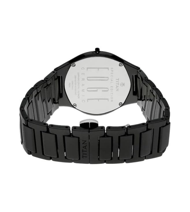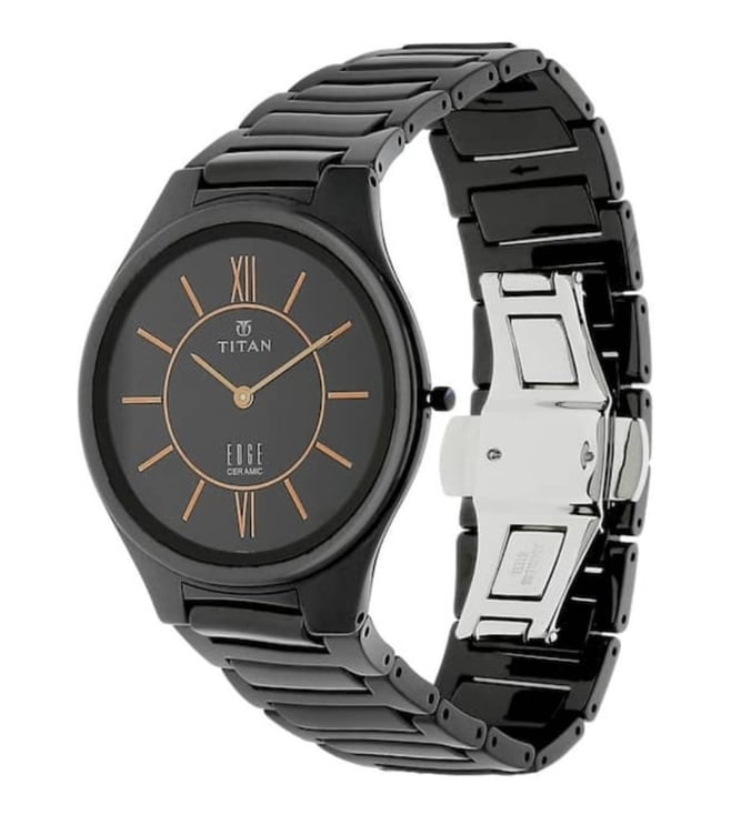 Designed to suit the preference of urban men, this analog watch from Titan is sure to make a style statement. The black round dial is protected by a sapphire crystal. The ceramic strap comes in a black hue that further elevates the look of the timekeeper. Besides, it is completed with a deployment clasp with push button clasp to ensure a secure fit on the wrist.