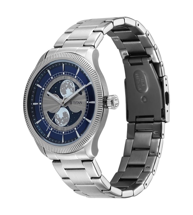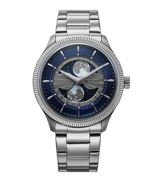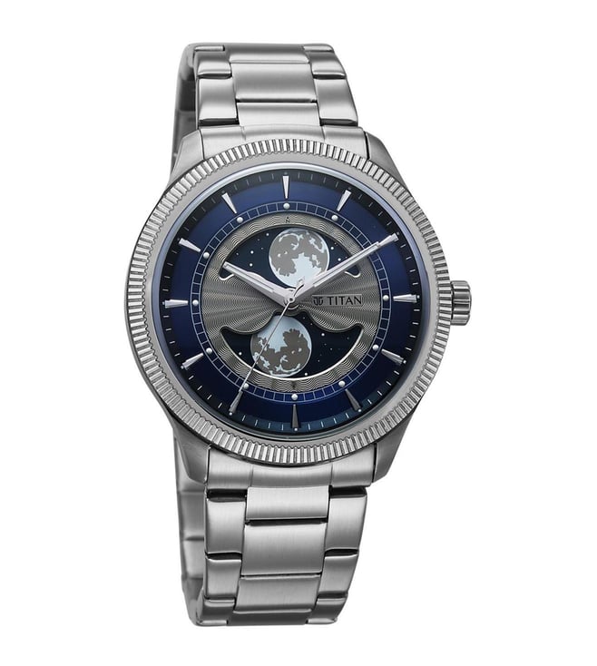 Experience time through two cosmic perspectives with the Titan Stellar Dual Moonphase. Featuring a luminous dual moonphase display and a fluted bezel, this timepiece offers precision with an in-house Quartz 7129A movement. Available in Classic Leather, Blue, and IP Bronze finishes. Key Features: Oversized moonphase, fluted bezel, water resistance: 5 ATM, 43 ¿ 47.5 mm case.