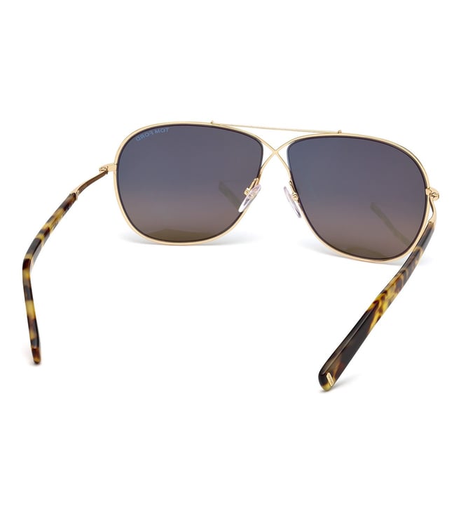 Add a dash of style to your look by wearing this pair of Sunglsses from Tom Ford . It comes with a Rose Gold Metal frame and Blue Plastic lenses that ensure complete protection of your eyes. Besides, the Full Rim design will fetch you compliments from your peers.