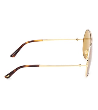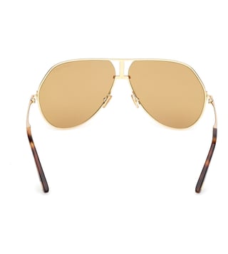 Add an extra charm to your look wearing this pair of Sunglsses from Tom Ford . The Brown lenses are made with care from Plastic that not only lends you a smart look but also assures complete protection of your eyes. Designed to perfection from Metal, the Gold-hued frame is light in weight. The Half Rim design further magnifies its overall appearance.