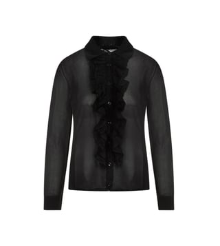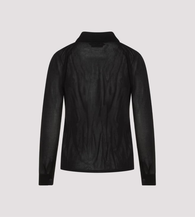 Elevate your wardrobe with this chic black casual shirt, featuring a captivating transparent pattern that exudes modern elegance. Crafted from 100% viscose, it offers a luxurious, silky feel against the skin, ensuring comfort and style. The long sleeves and classic shirt collar add a touch of sophistication, making it perfect for any occasion. Designed for the contemporary woman, this shirt seamlessly blends versatility with a hint of allure, making it a must-have staple in your fashion collection.