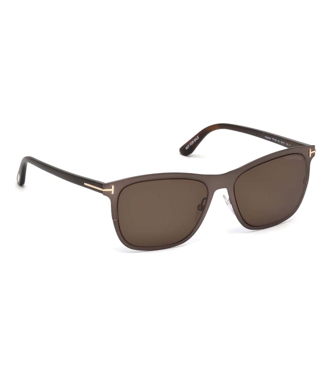 Declaim your style mantras by wearing this pair of UV protected square sunglasses from Tom Ford. While the brown-toned metal frame lends a cool look to the sunglasses, the grey coloured plastic lenses guarantee the complete protection of your eyes. These sunglasses exhibit an excellent finish and are comfortable to wear. The full-rim design further elevates its look.