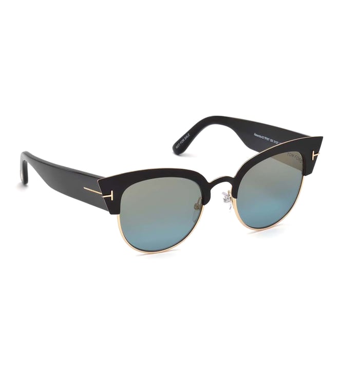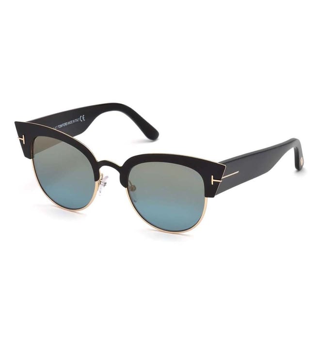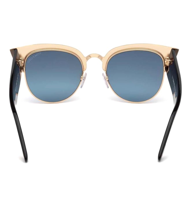 Stand out in the crowd by donning this pair of UV protected round sunglasses from Tom Ford. While the black-toned metal frame lends a cool look to the sunglasses, the blue coloured plastic lenses guarantee the complete protection of your eyes. These sunglasses exhibit an excellent finish and are comfortable to wear. The full-rim design further elevates its look.