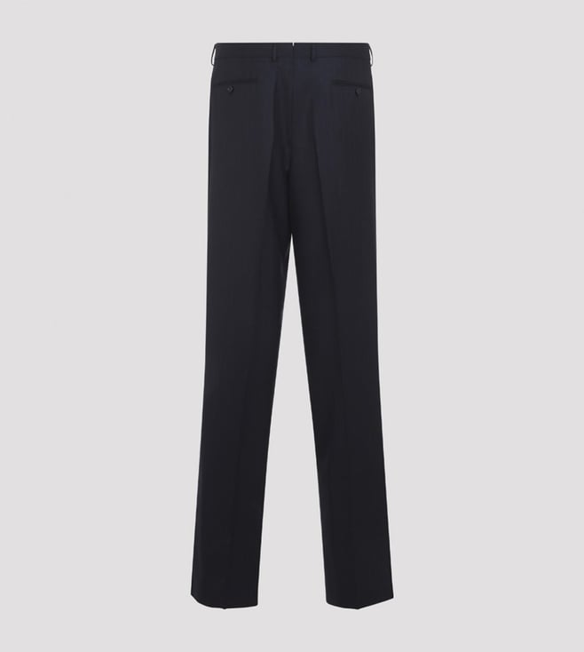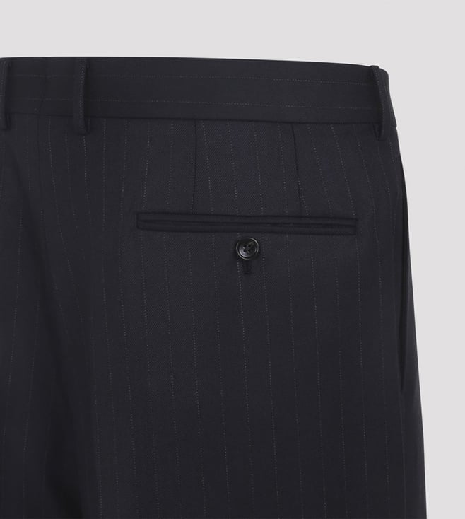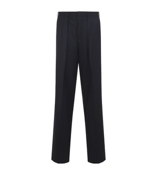 Elevate your wardrobe with these sophisticated navy blue wool trousers, crafted from 100% premium wool. Designed for the modern man, their solid pattern exudes timeless elegance. Perfect for any occasion, these trousers offer a tailored fit, ensuring comfort and style in every stride. Products purchased from Darveys are supported exclusively by the warranty/exchange policies of Darveys and its partner boutiques. Brand owners and their channel partners are not responsible for exchange/warranty services for items purchased through Darveys.