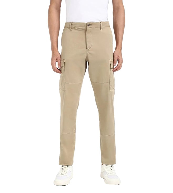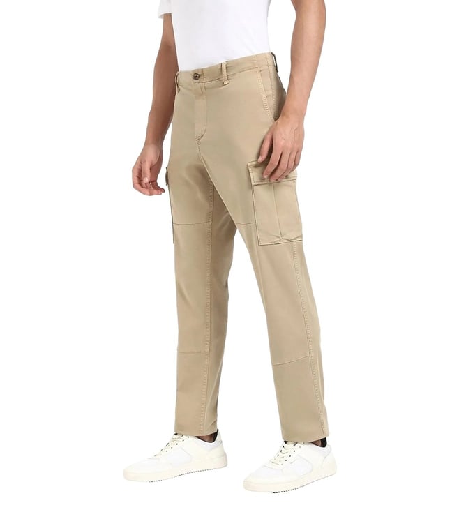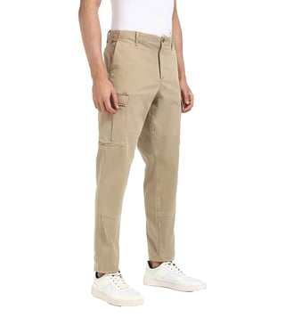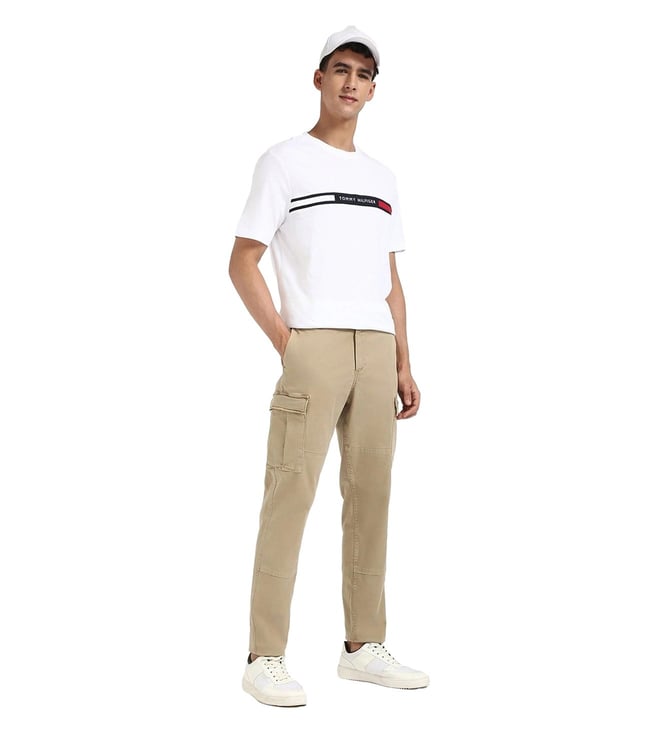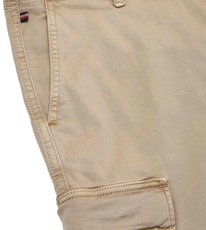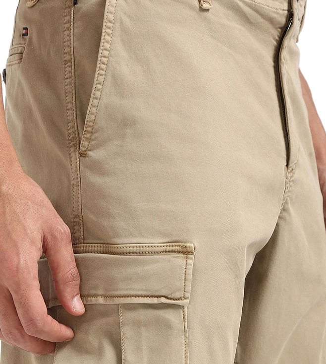 TOMMY HILFIGER Beige Cotton Cargo Solid Trousers