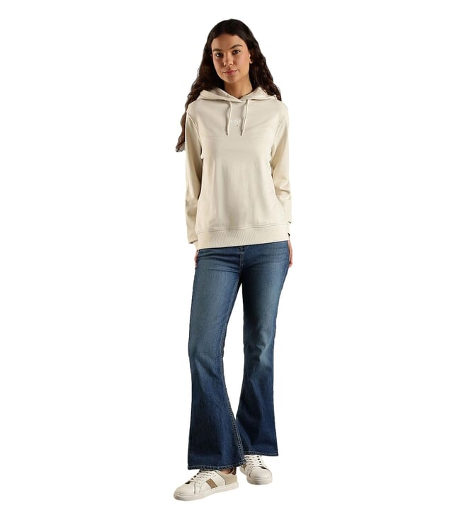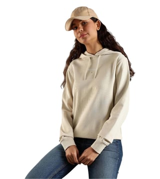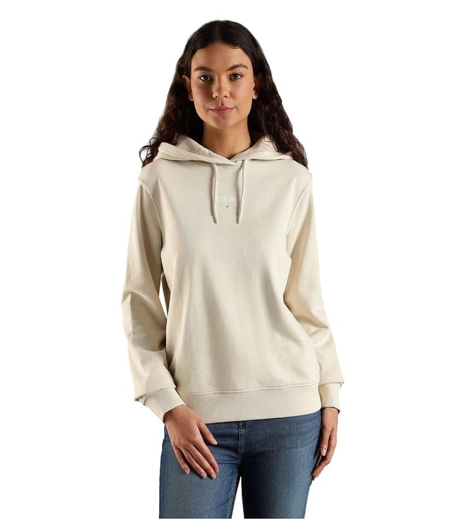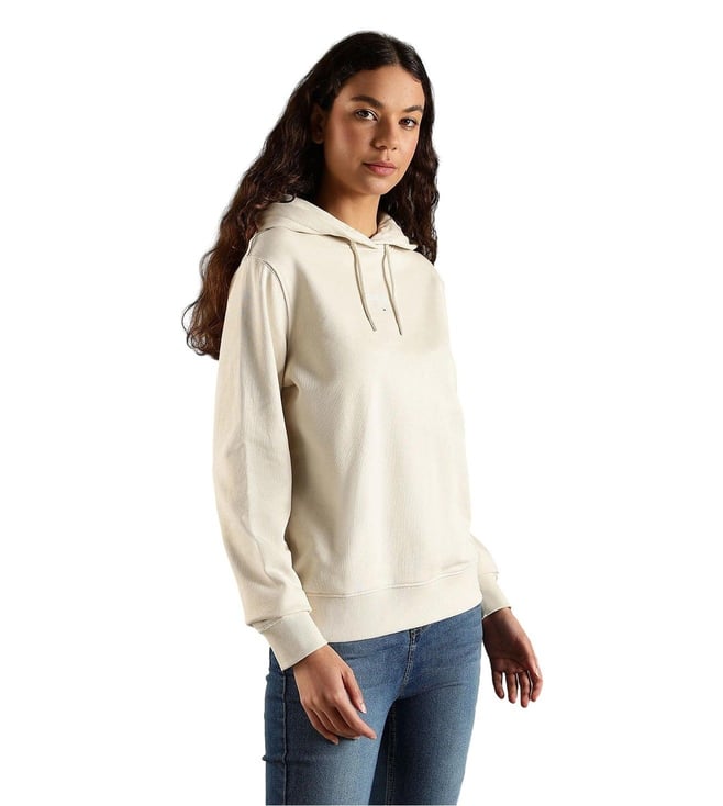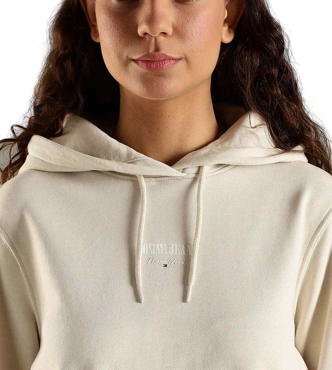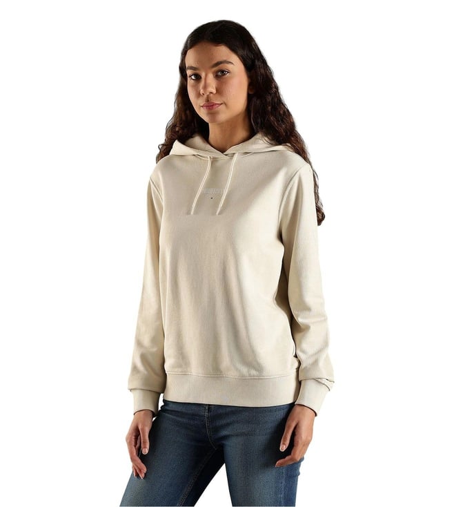 TOMMY HILFIGER Beige Cotton Regular Fit Hooded Sweatshirt
