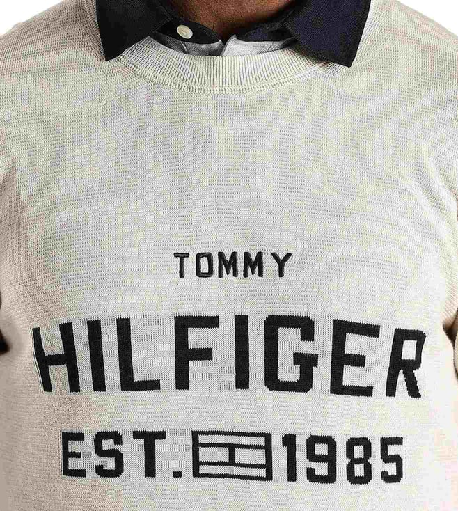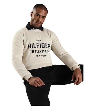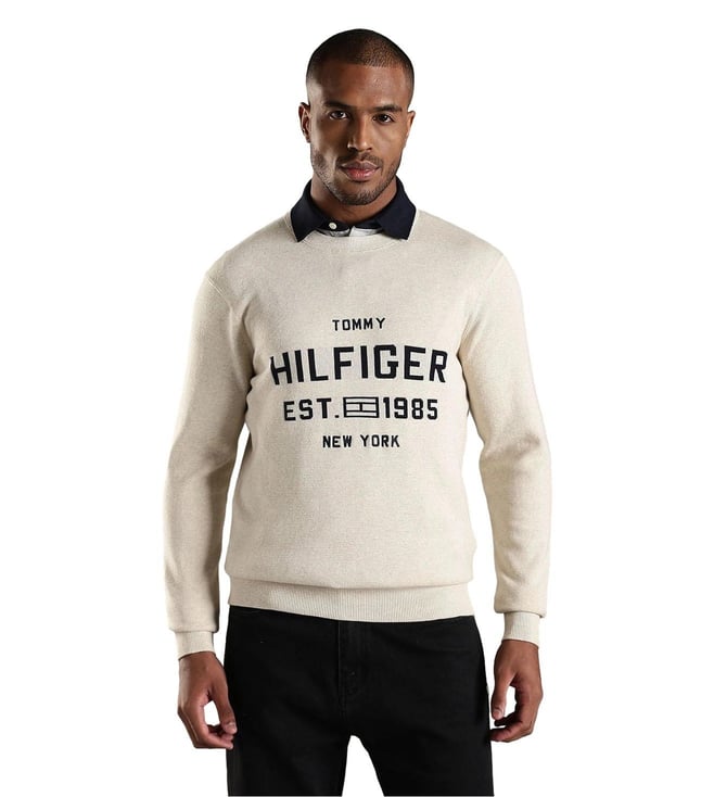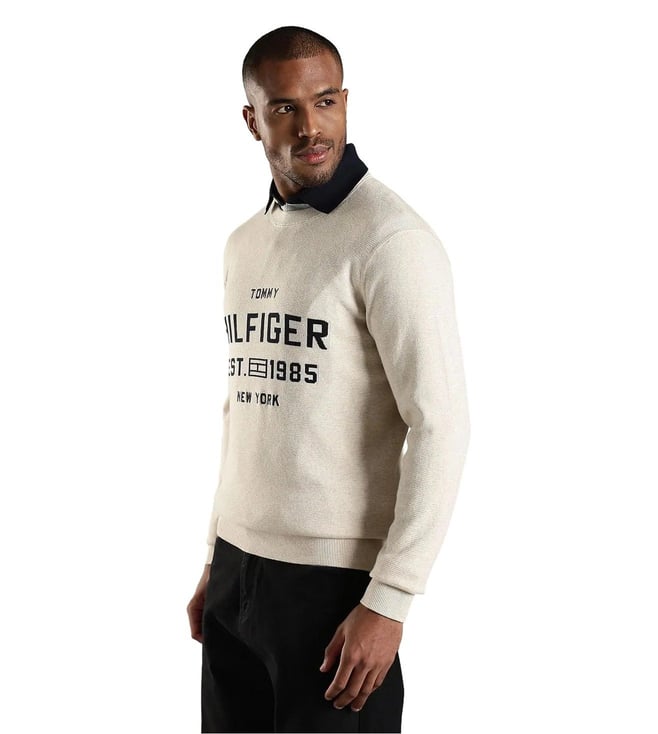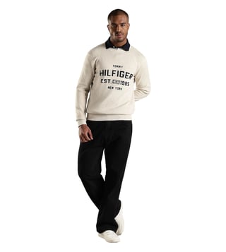 TOMMY HILFIGER Beige Cotton Regular Fit Logo Printed Sweatshirt