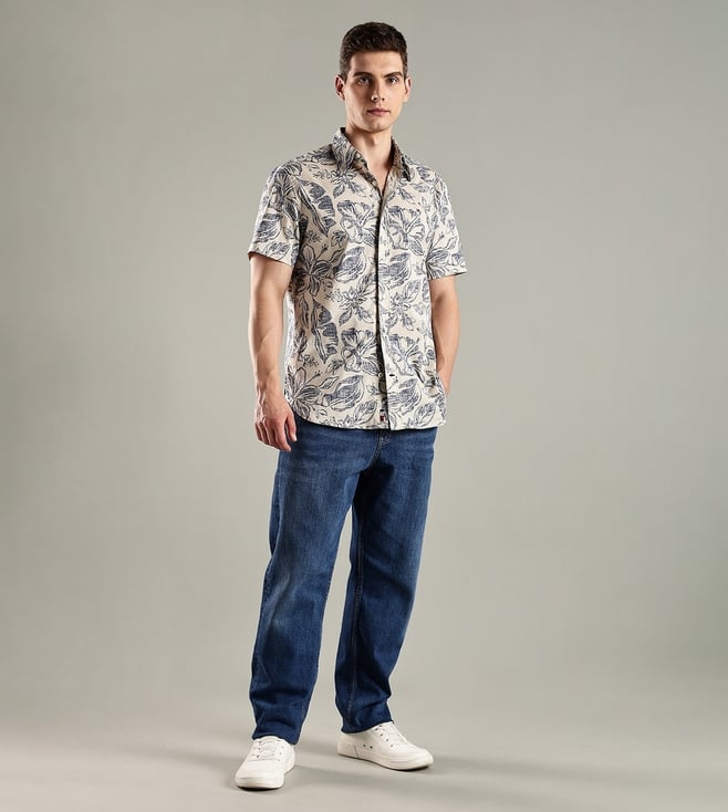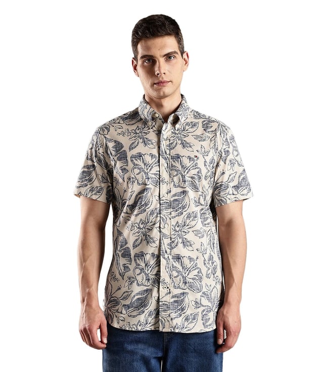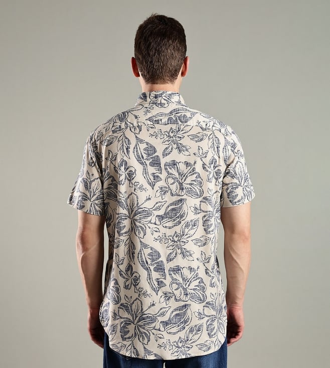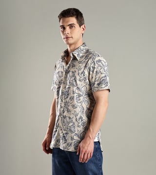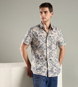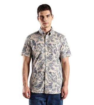Bloom with confidence in this beige floral shirt from our U.S. collection. Meticulously woven from premium cotton, it's a testament to casual sophistication for the modern man. The delicate floral pattern dances across the fabric, infusing your outfit with a touch of nature-inspired charm. Perfect for those laid-back occasions where style still matters, this western-inspired piece effortlessly bridges the gap between relaxed and refined.
