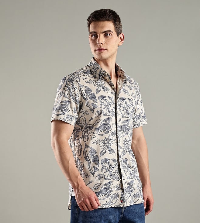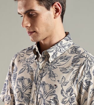 TOMMY HILFIGER Beige Cotton Slim fit Printed Shirt