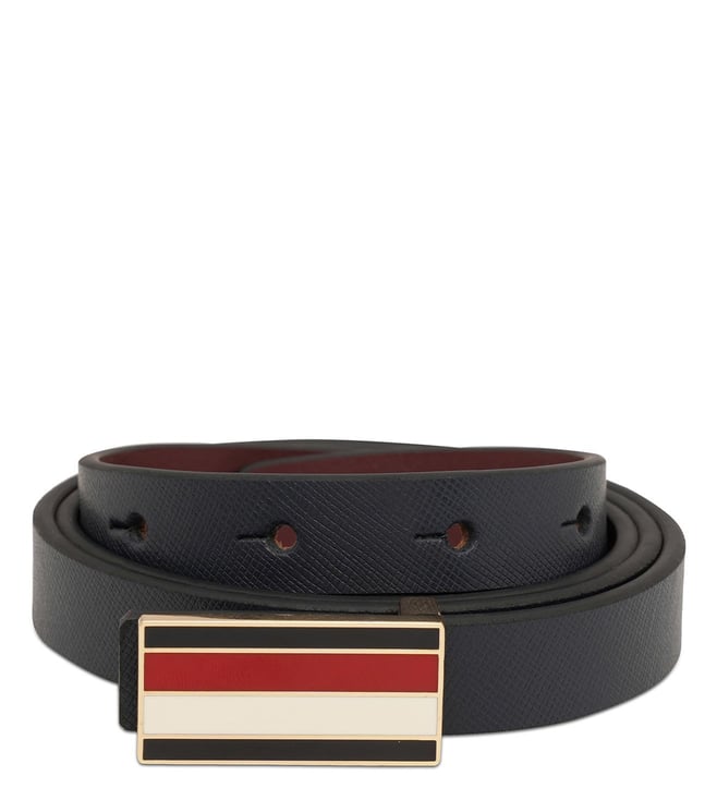 Navy & Wine Pansy Textured Leather Reversible Belt