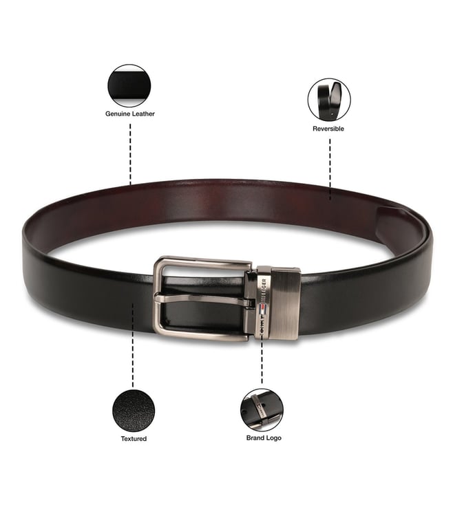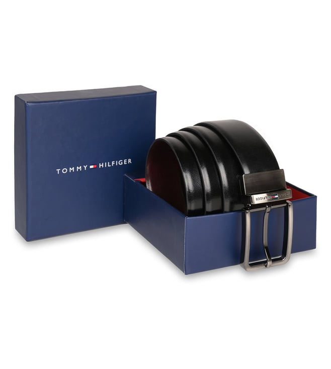 TOMMY HILFIGER Black & Wine Troy Leather Reversible Belt