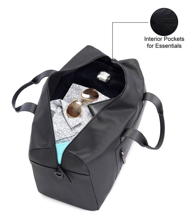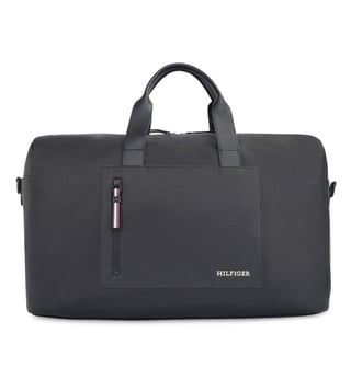Unleash your ultra-modern side with this men gym duffle bag from TOMMY HILFIGER. It features a zip closure for added attraction. Exuding an urbane feel, it is detailed with 1 compartment to accommodate daily essentials in a safe manner. Made of premium quality polyester for durability, this black gym duffle bag has a adjustable strap for carrying comfort.