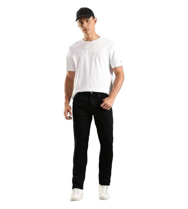 TOMMY HILFIGER Black Cotton Regular Fit Jeans