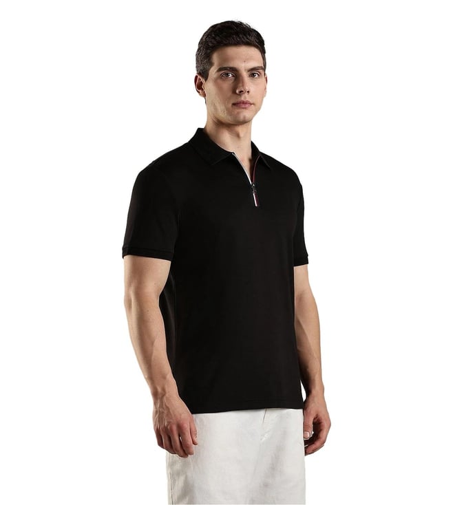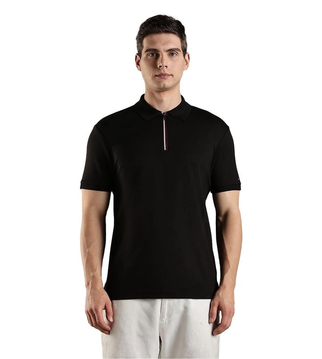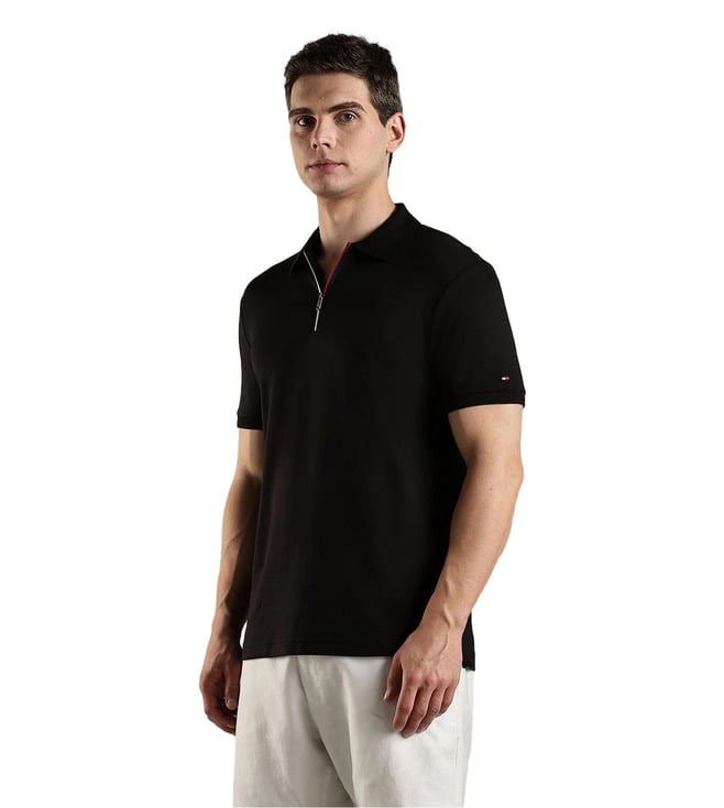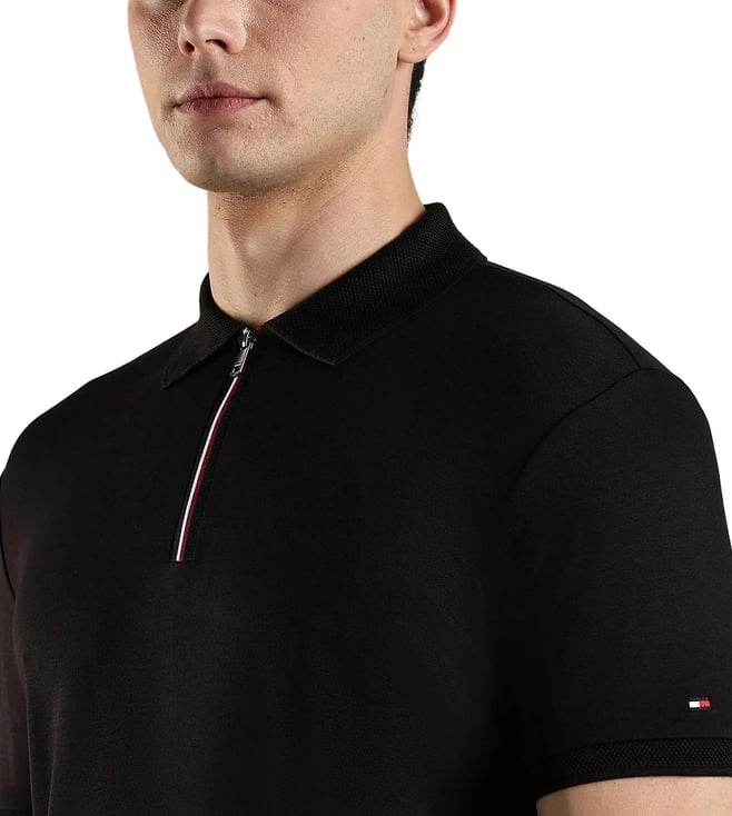 TOMMY HILFIGER Black Cotton Regular Fit Polo T-Shirt
