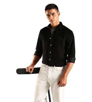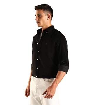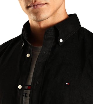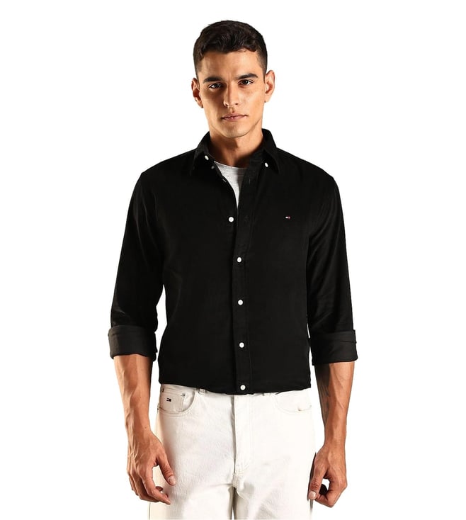 TOMMY HILFIGER Black Cotton Regular Fit Shirt