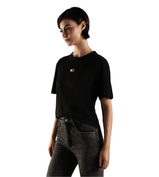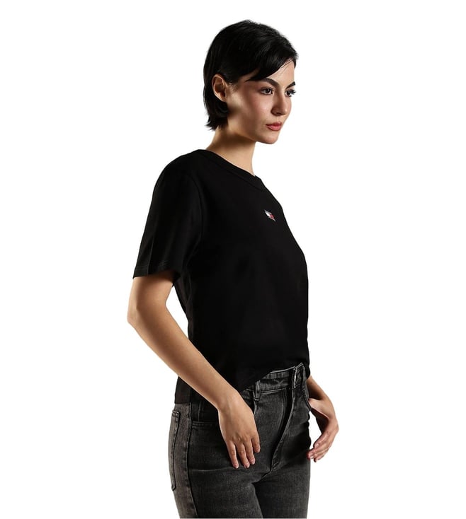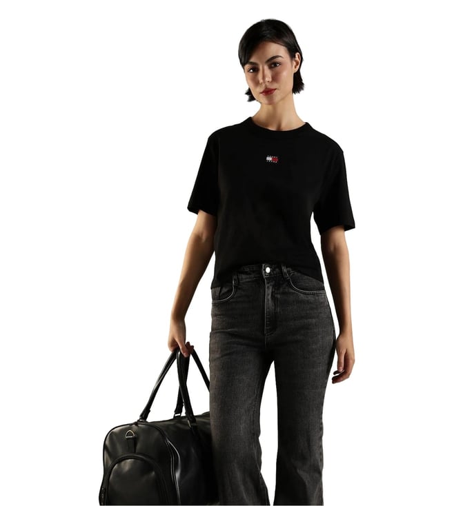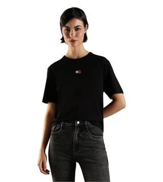 TOMMY HILFIGER Black Cotton Regular Fit T-Shirt