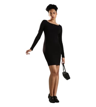 Make a statement with this dress from Tommy Hilfiger designed for sleek elegance. The solid bodycon silhouette celebrates curves with versatility, perfect for nights out or casual days, pairing effortlessly with jewelry or heels.
