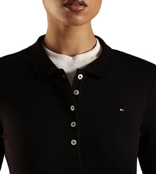 TOMMY HILFIGER Black Cotton Slim Fit Polo T-Shirt