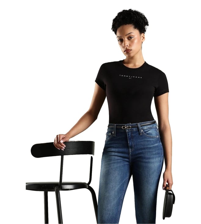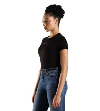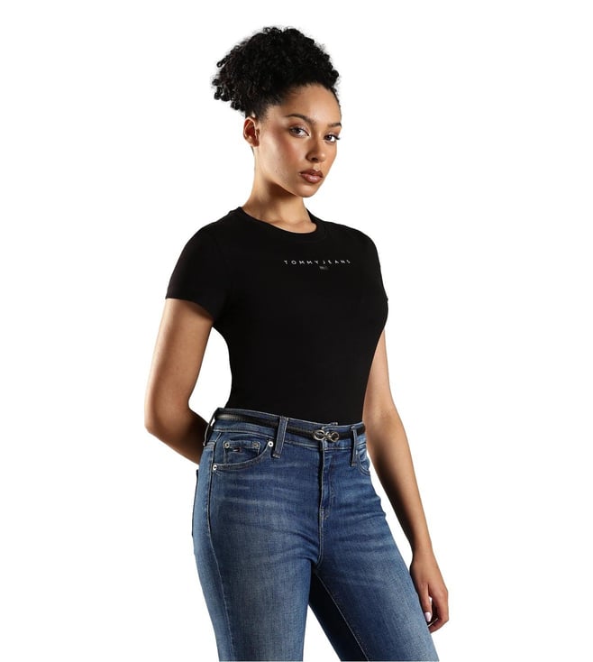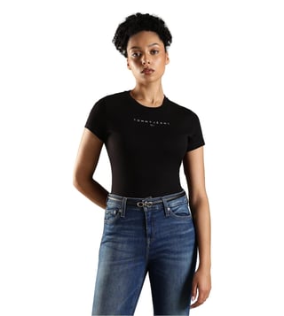 TOMMY HILFIGER Black Cotton Slim Fit T-Shirt