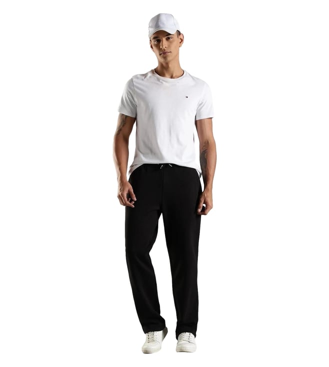 TOMMY HILFIGER Black Cotton Straight Fit Trackpants