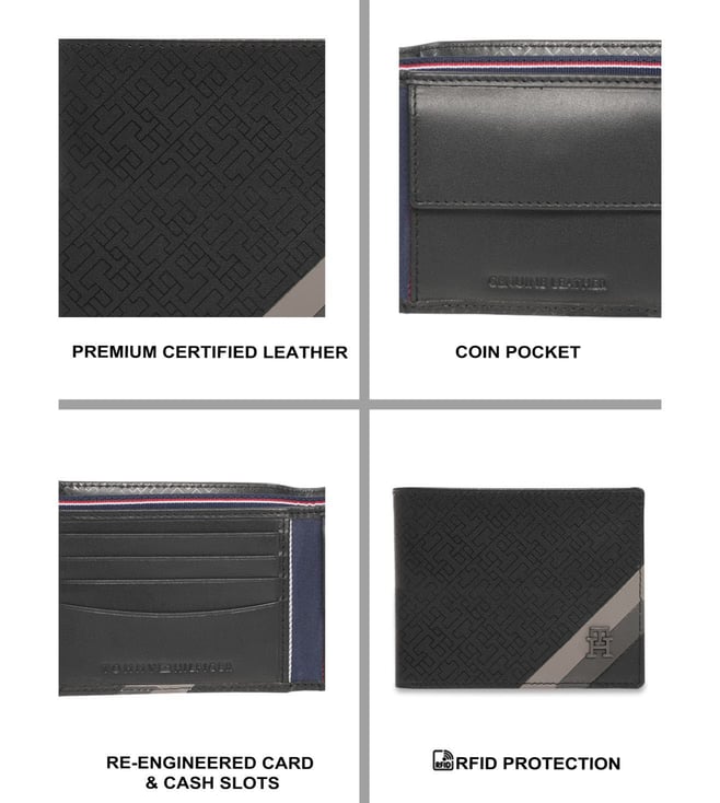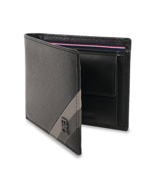TOMMY HILFIGER Black Deleware Logo Leather Bi-Fold Wallet