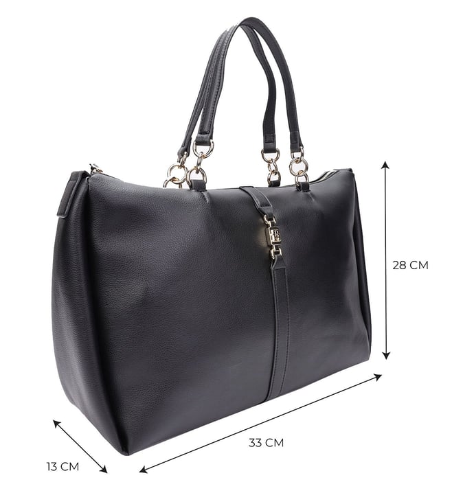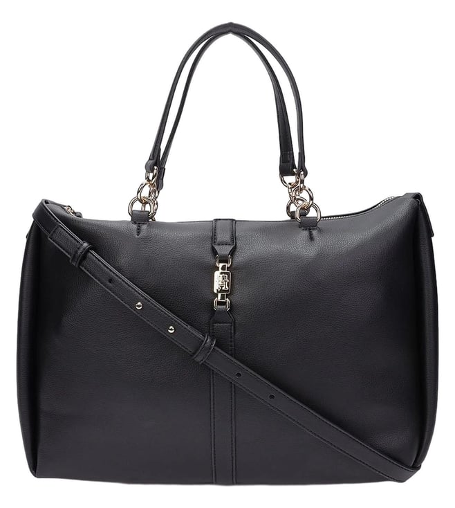 Step into the world of European elegance with this sleek and sophisticated duffle bag from Tommy Hilfiger. This women's bag is the perfect companion for the modern, on-the-go woman. Its solid design exudes timeless style, making it a versatile choice for any casual occasion. Whether you're heading to the gym, embarking on a weekend getaway or simply running errands around town, this duffle bag effortlessly combines fashion and function. The spacious interior provides ample room for all your essentials, while the sturdy construction ensures your belongings stay secure.