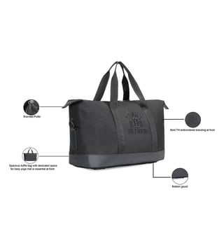 Unleash your ultra-modern side with this unisex duffle gym bag TOMMY HILFIGER. It features a zip closure and a solid pattern for added attraction. Exuding an urbane feel, it is detailed with 1 compartments and 3 pockets to accommodate daily essentials in a safe manner. Made of premium quality Polyester for durability, this black duffle gym bag has a removable strap for carrying comfort.