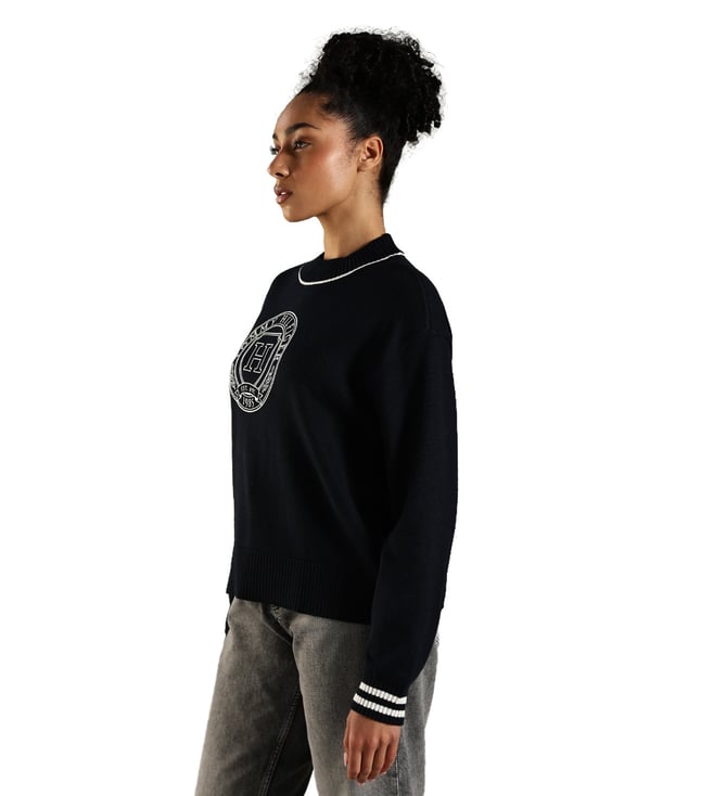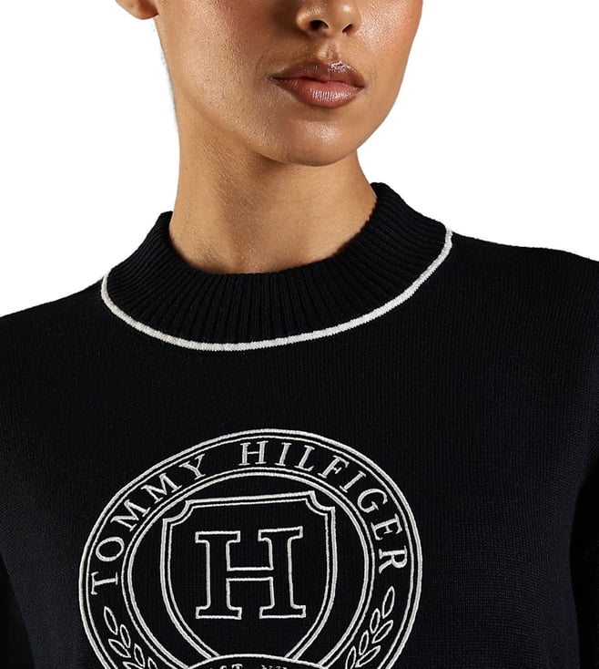 TOMMY HILFIGER Black Logo Printed Regular Fit Sweater
