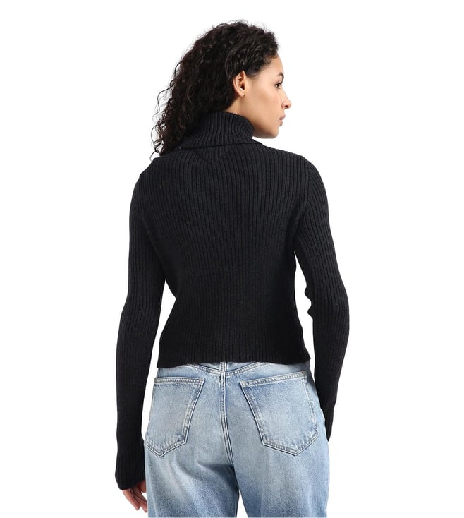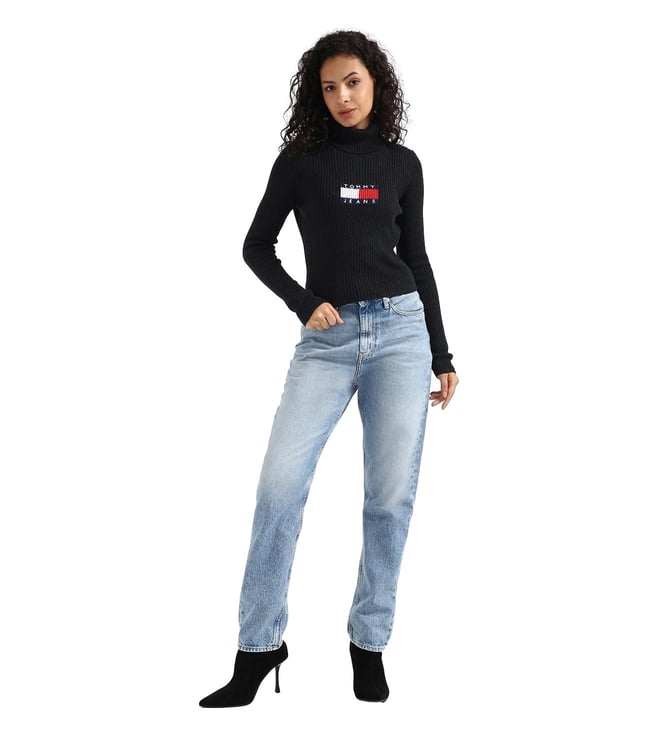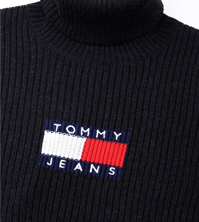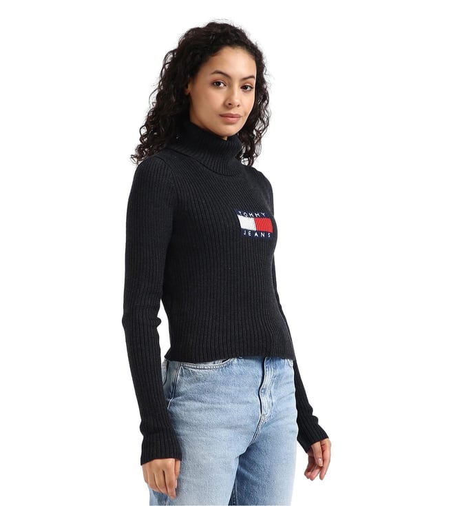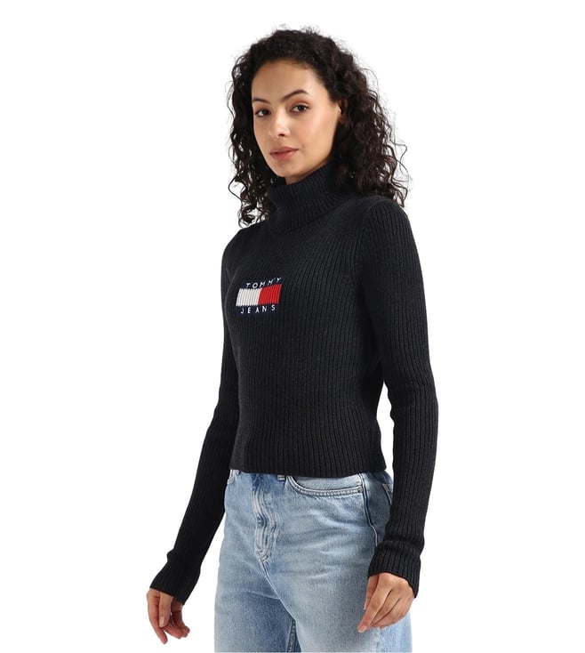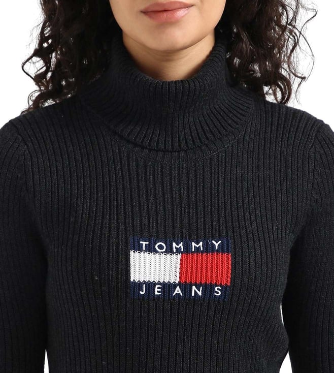 TOMMY HILFIGER Black Melange Slim Fit Logo Printed Sweater