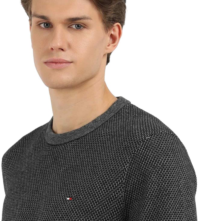 TOMMY HILFIGER Black & Multi Structured Regular Fit Pullover