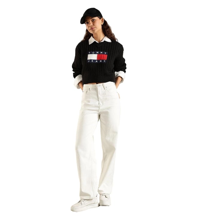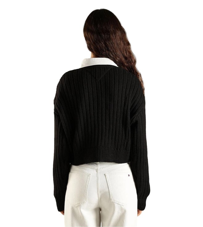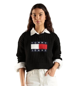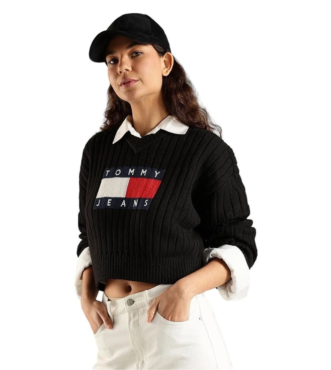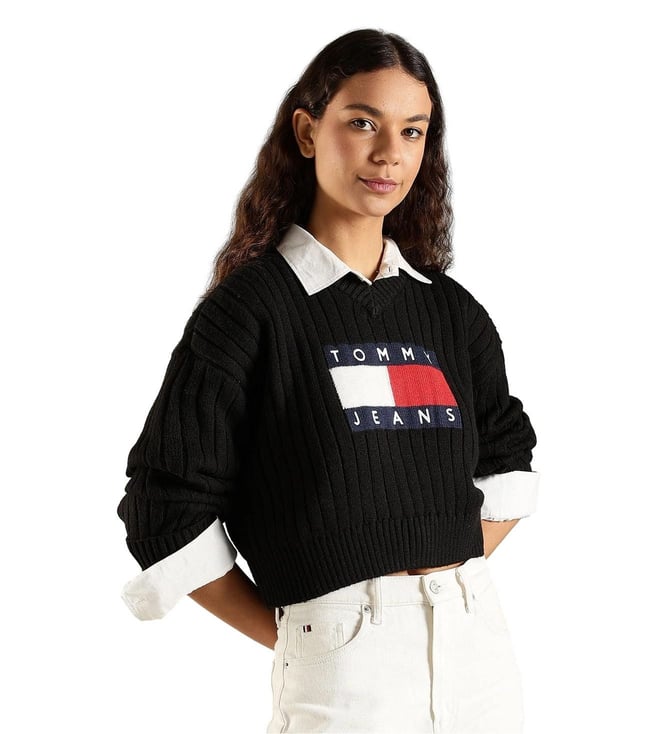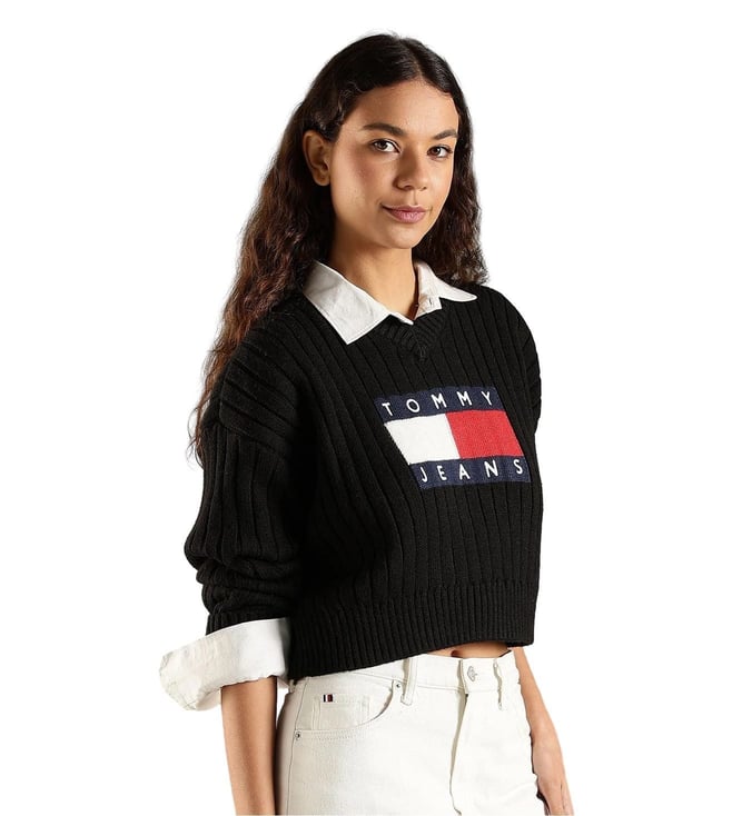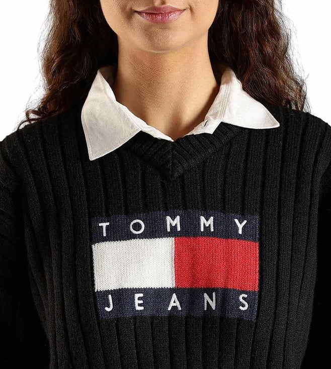 TOMMY HILFIGER Black Relaxed Fit Logo Printed Sweater
