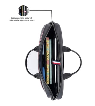 Redefine your workday with this briefcase from the Rothenburg collection by Tommy Hilfiger. It is a masterpiece of craftsmanship and style. With its timeless design and spacious compartments, this briefcase is the epitome of sophistication and practicality. Elevate your fashion game with this iconic accessory.