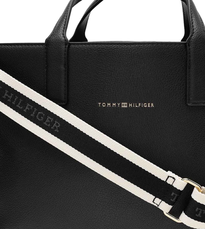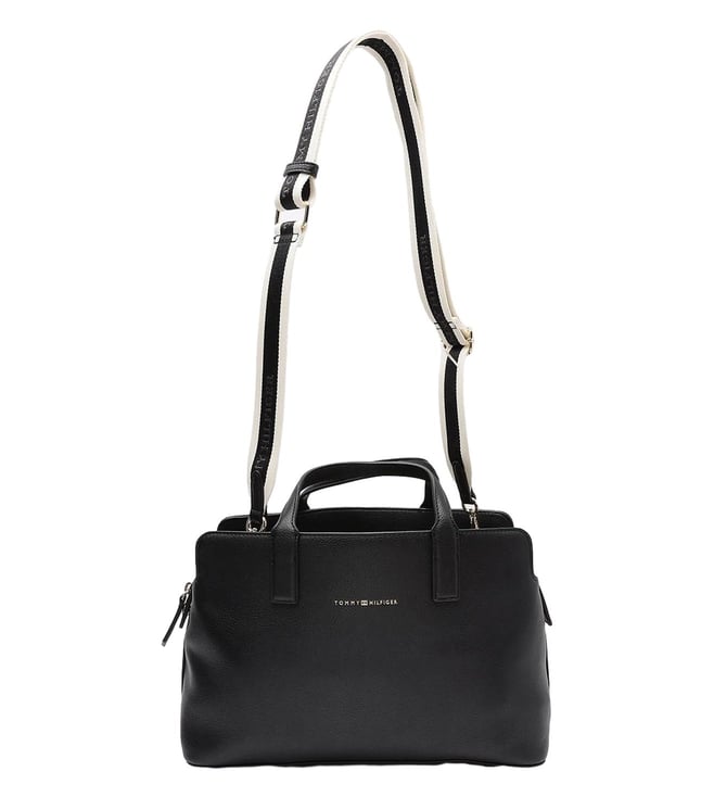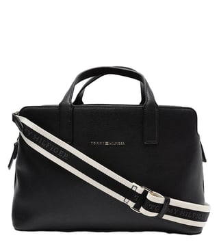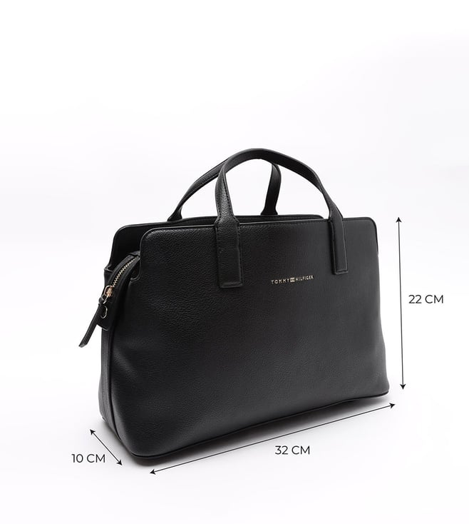 Keep your stuff handy while you are on the move with this satchel bag from Tommy Hilfiger. Its solid pattern and versatile colour make it an ideal match for any casual outfit. Whether you're heading to work or enjoying a day out with friends, this bag combines style and functionality effortlessly.