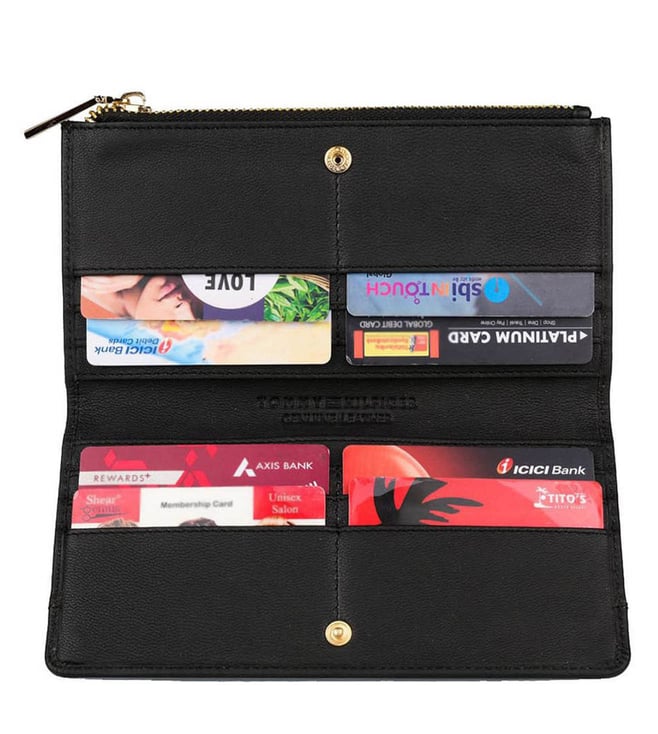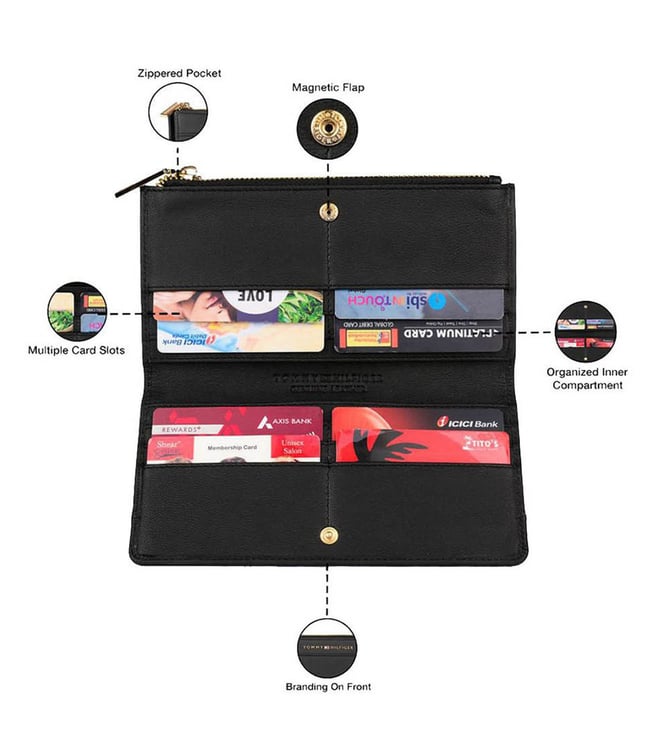 Amp up your style quotient with this bi-fold wallet from Tommy Hilfiger. Shaped bi-fold wallet from fine quality leather, it is quality assured and proves to be a smart inclusion to your accessory collection. Displaying a stunning pattern, this black bi-fold wallet is nothing but a stylish expression of your elegant personality. It has spacious compartments and slots to accommodate currency notes and credit cards in a safe manner.