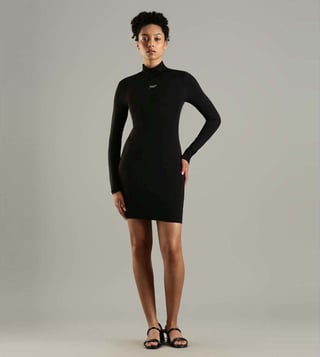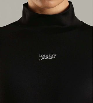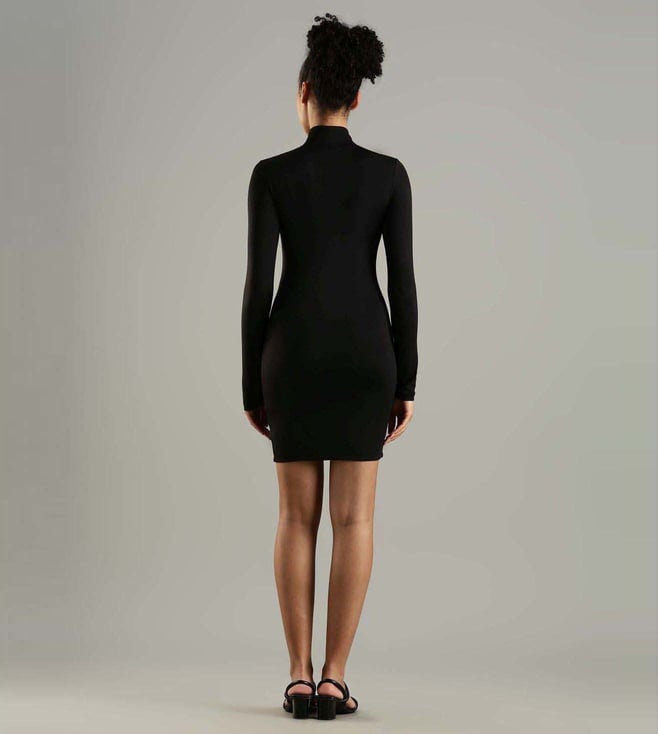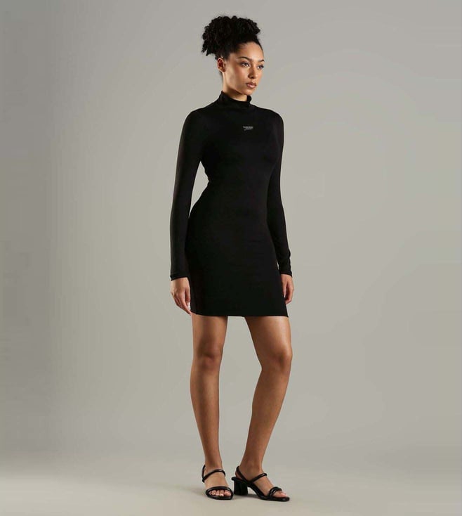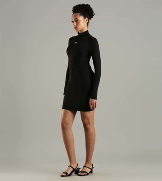 Channel a winning style effortlessly by wearing this black skinny fit dress from TOMMY HILFIGER. Tailored to sartorial perfection from premium quality fabric, it assures a soft and soothing touch against the skin. The round neck adds to its appeal.