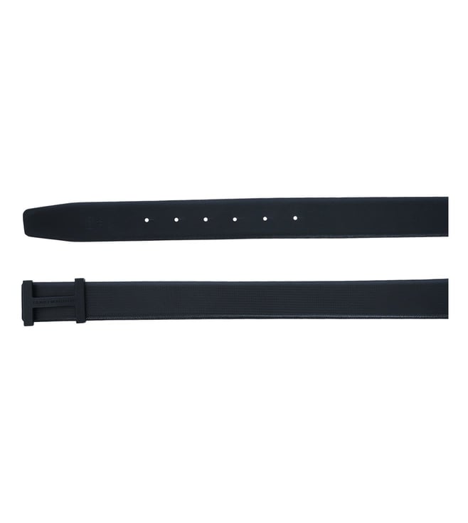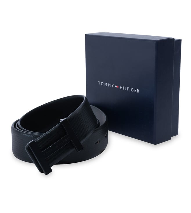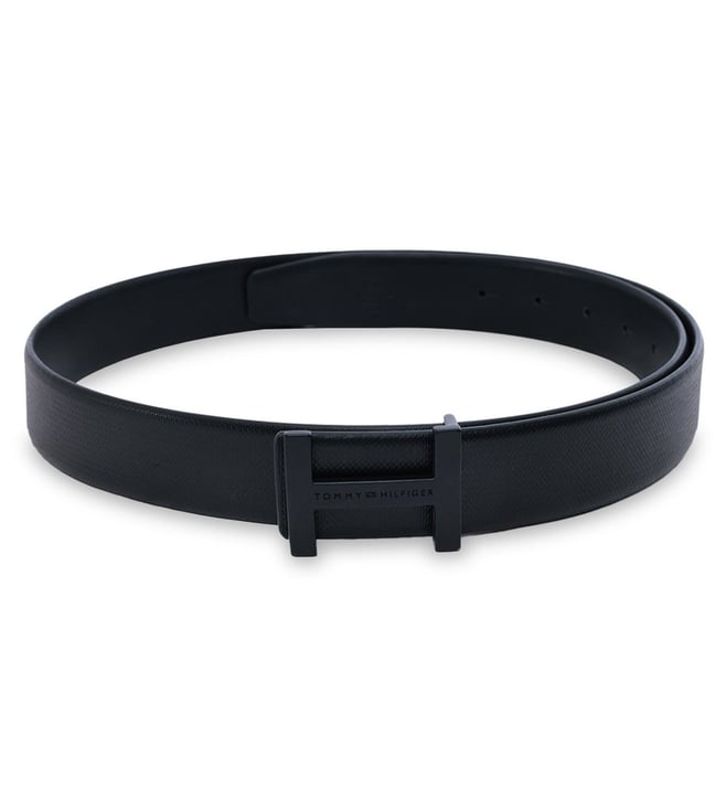 TOMMY HILFIGER Black Textured Leather Reversible Belt