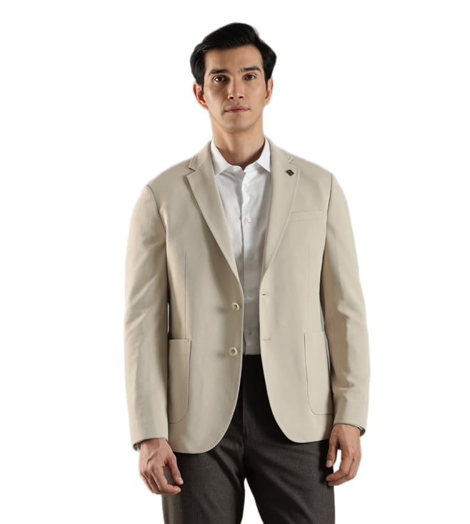 Beige Regular Fit Single Breasted Blazer