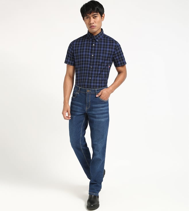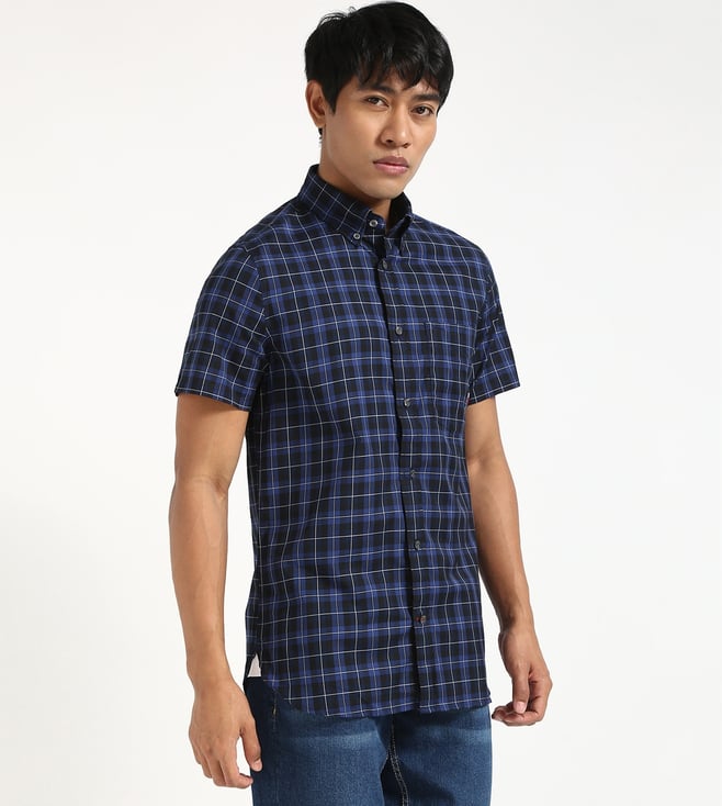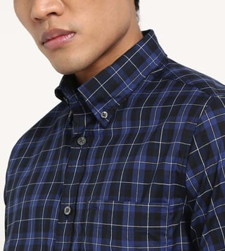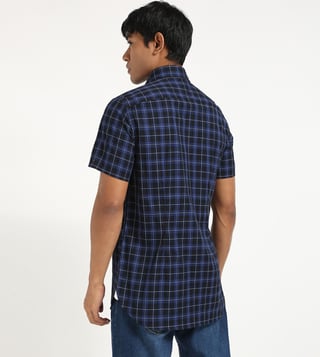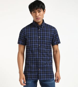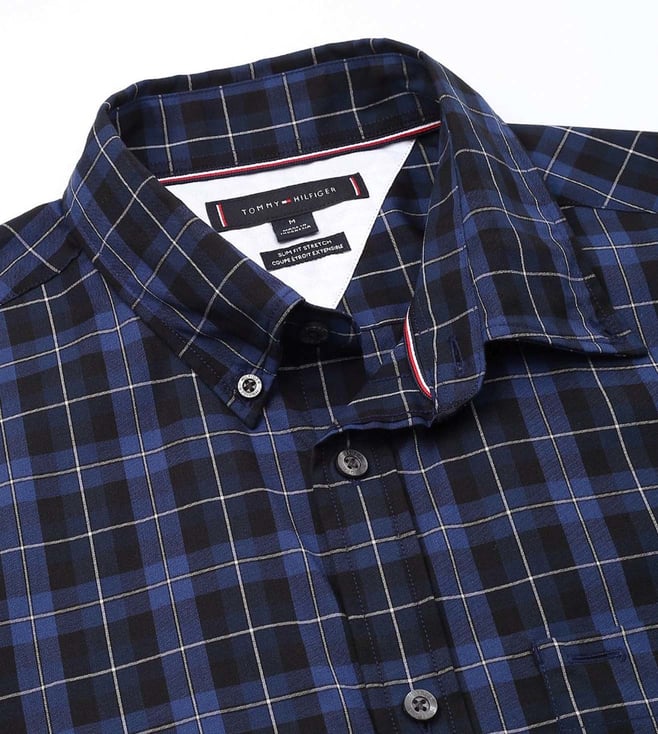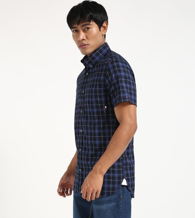 TOMMY HILFIGER Blue Cotton Regular Fit Checks Shirt
