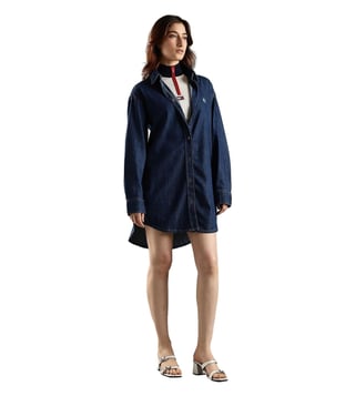 TOMMY HILFIGER Blue Cotton Regular Fit Dress