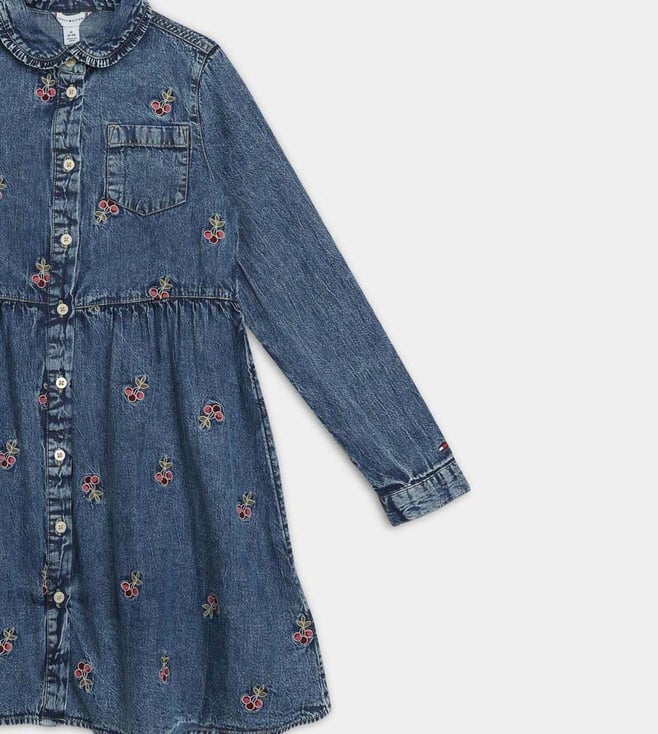 TOMMY HILFIGER Blue Cotton Regular Fit Embroidered Dress