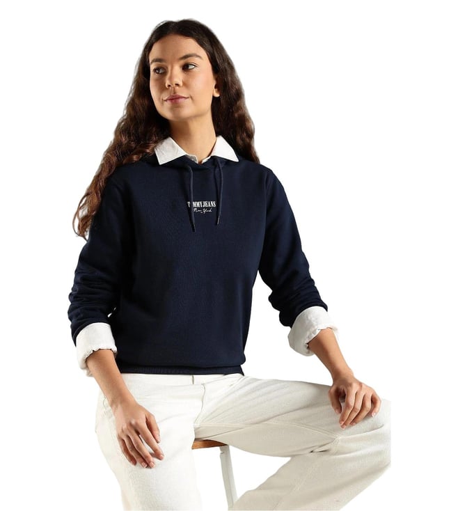 TOMMY HILFIGER Blue Cotton Regular Fit Hooded Sweatshirt