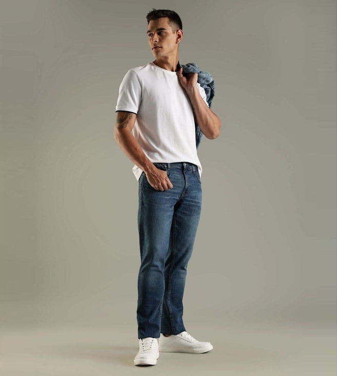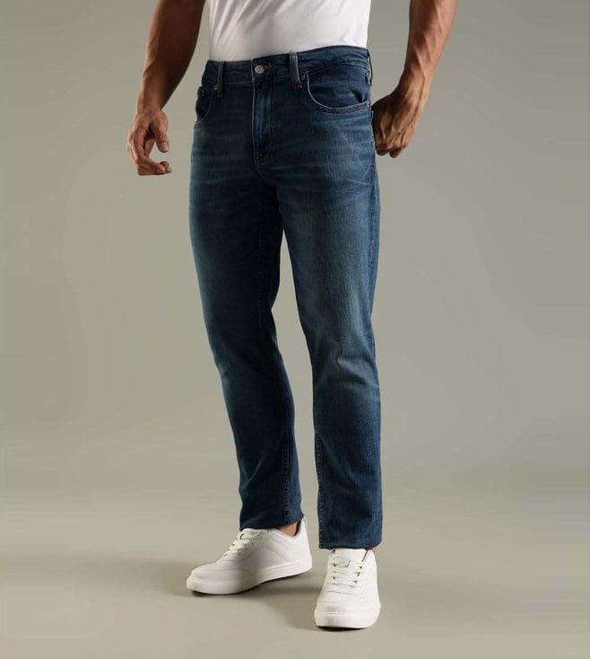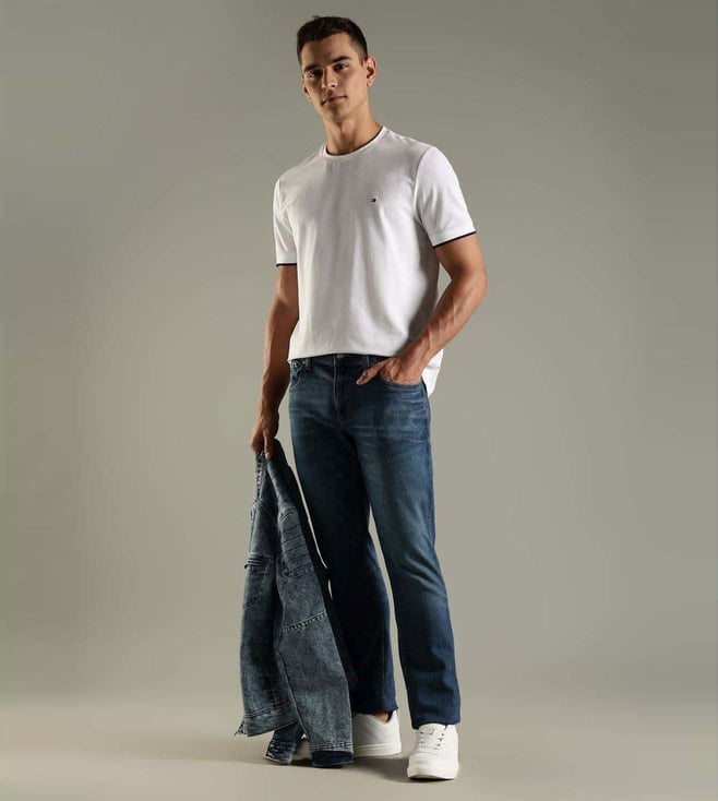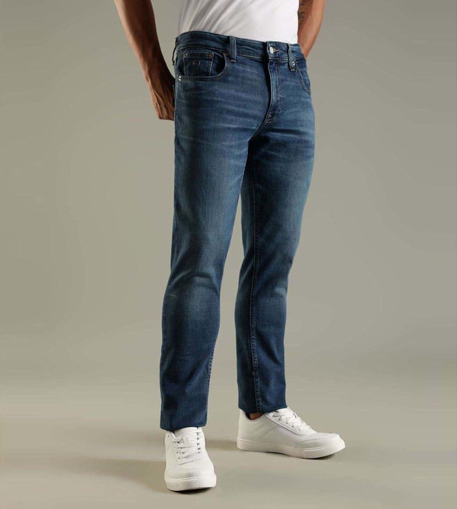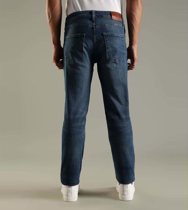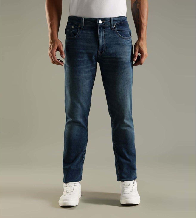 Impress your peers by wearing this pair of blue regular fit jeans from TOMMY HILFIGER. Tailored to sartorial perfection from premium quality fabric, it assures a soft and soothing touch against the skin.