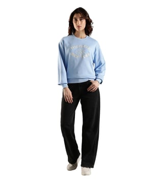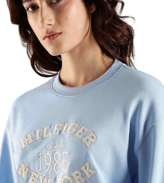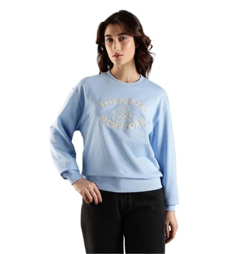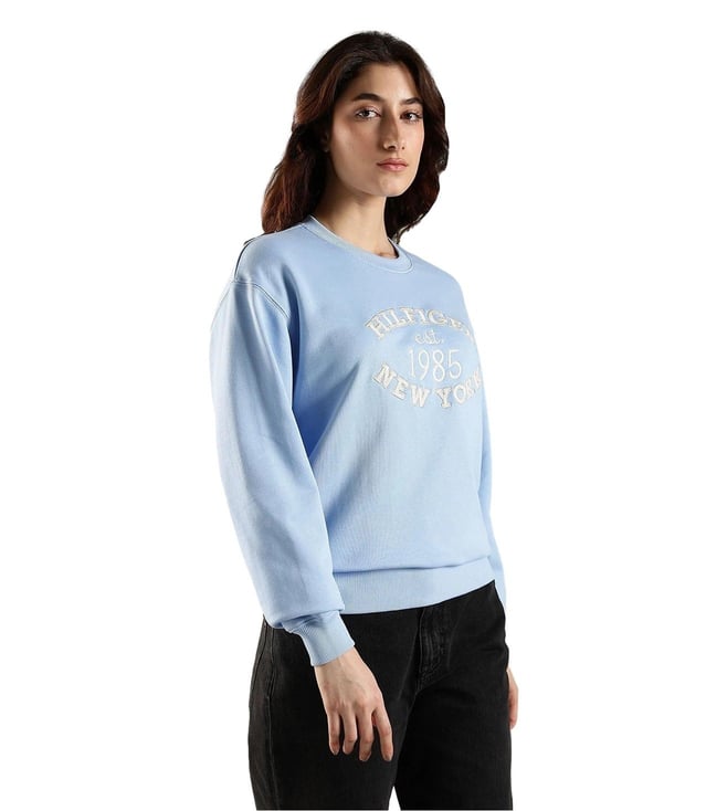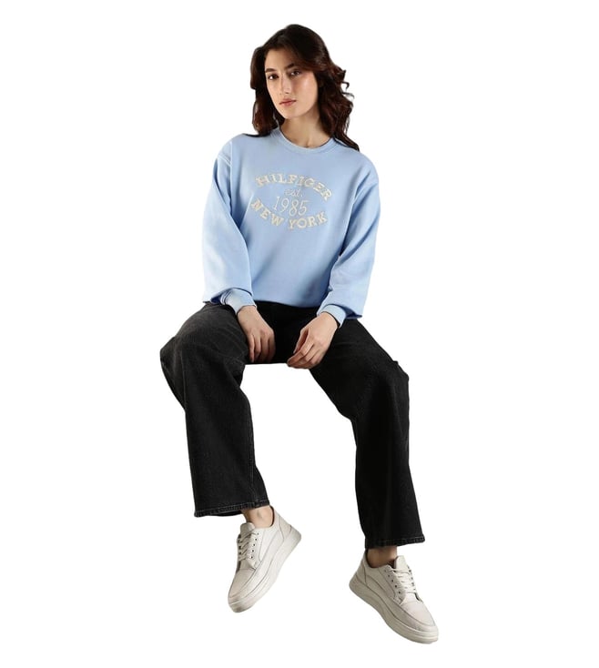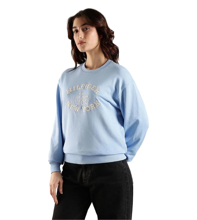 TOMMY HILFIGER Blue Cotton Regular Fit Logo Printed Sweatshirt