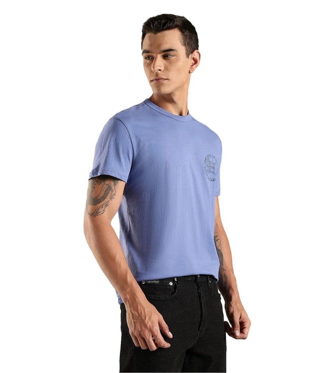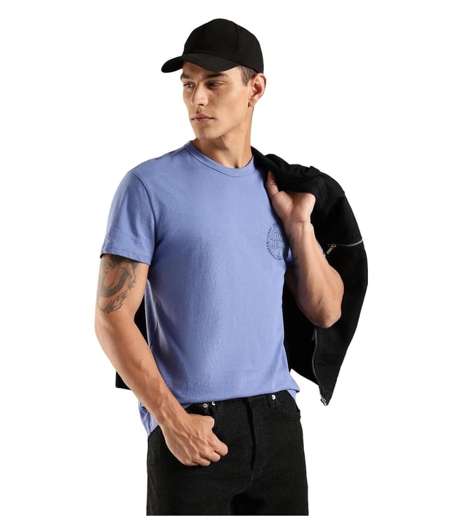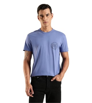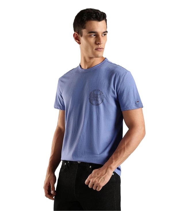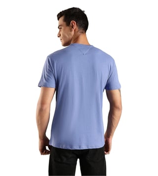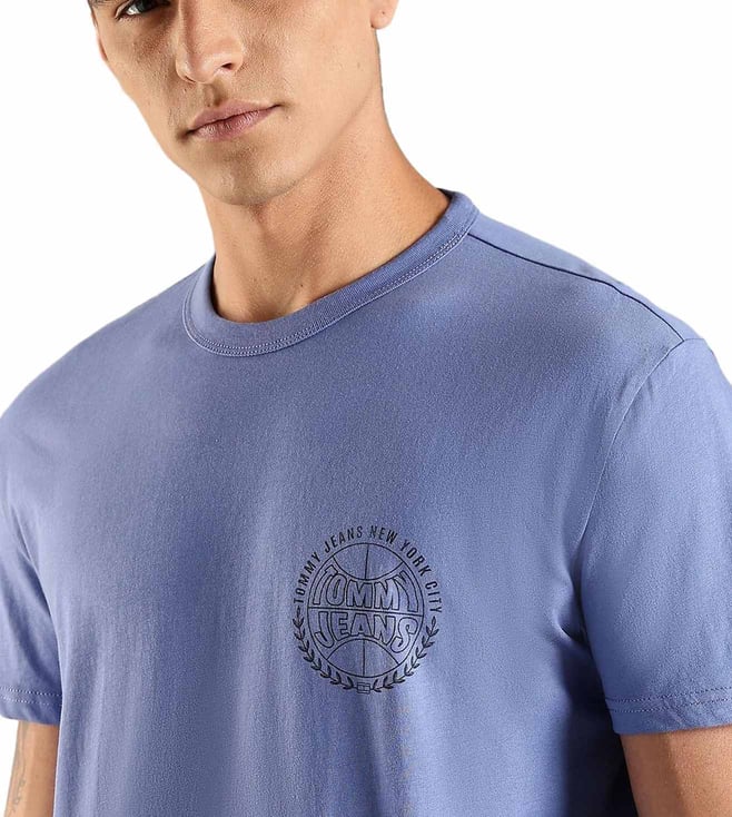 TOMMY HILFIGER Blue Cotton Regular Fit Logo Printed T-Shirt