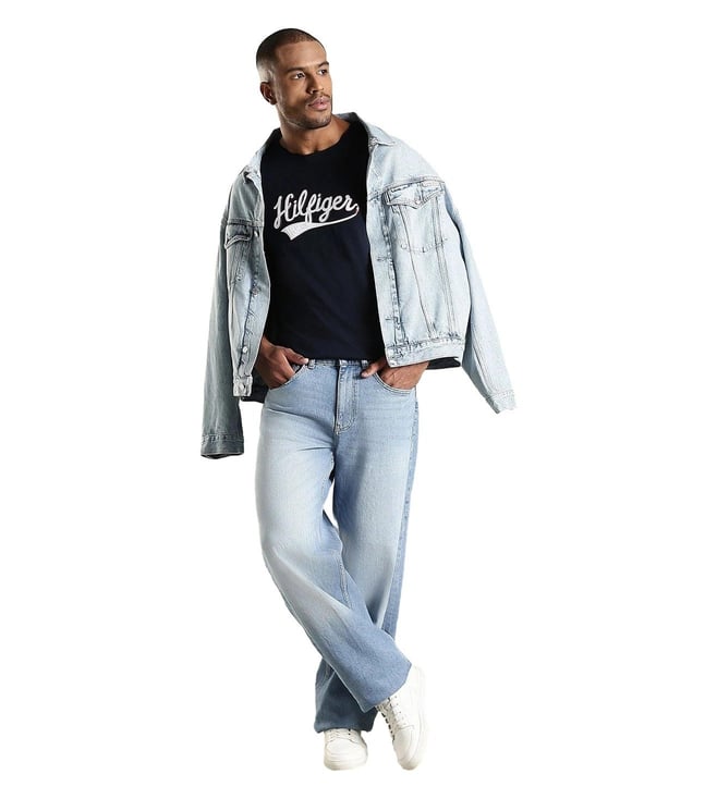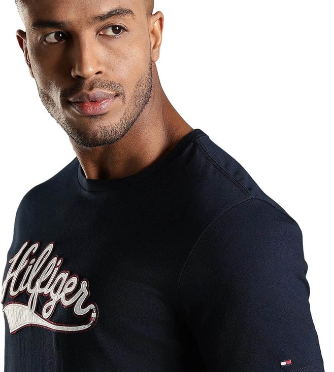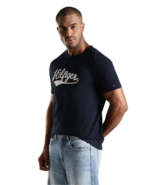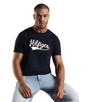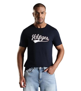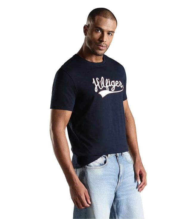 TOMMY HILFIGER Blue Cotton Regular Fit Logo Printed T-Shirt