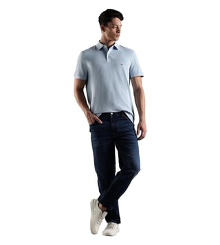 TOMMY HILFIGER Blue Cotton Regular Fit Polo T-Shirt