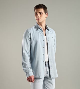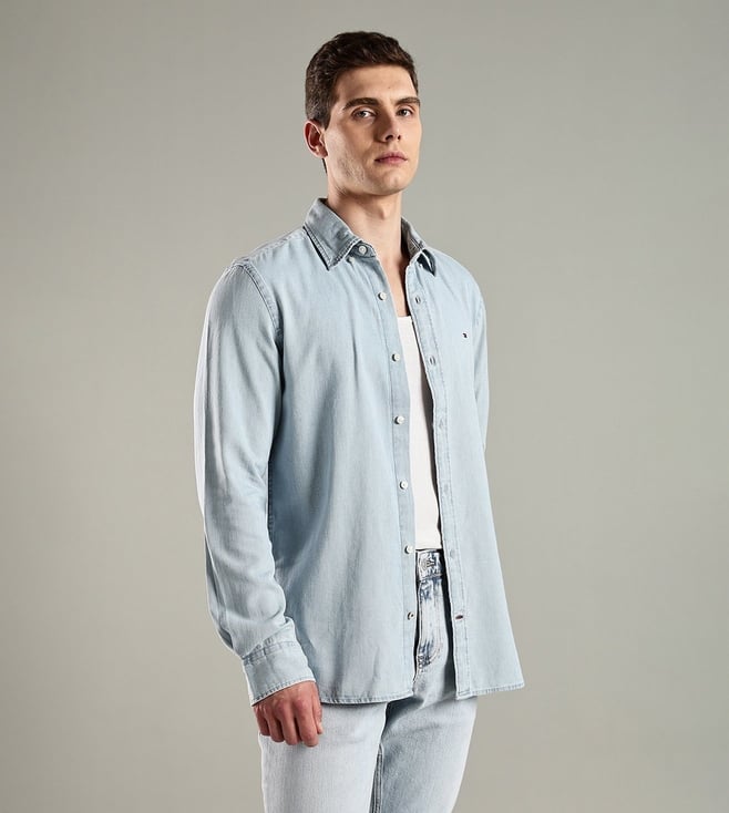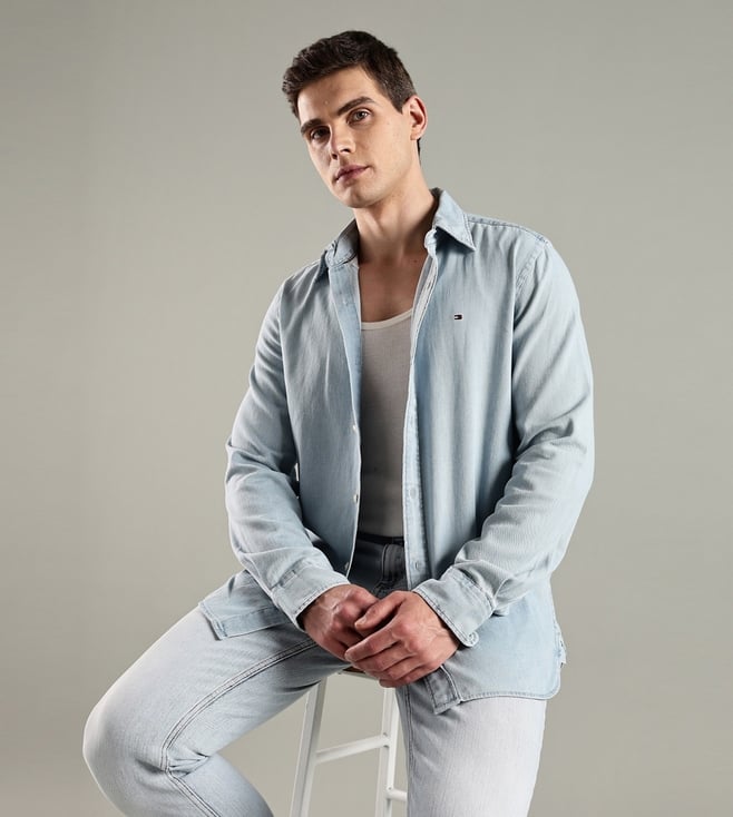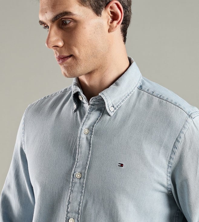TOMMY HILFIGER Blue Cotton Regular Fit Shirt