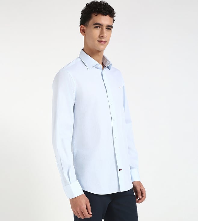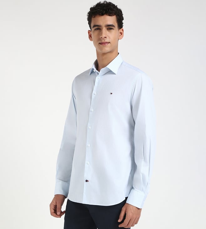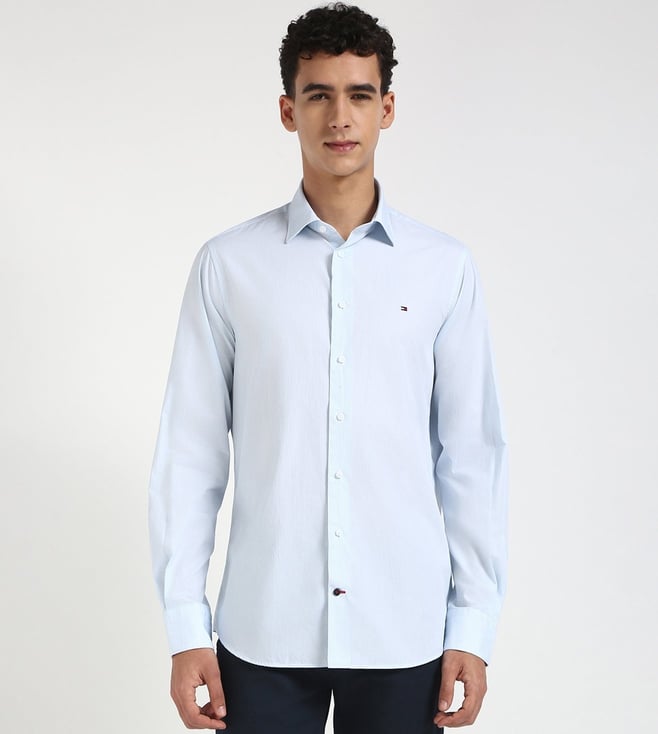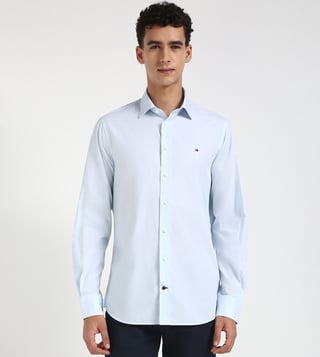 TOMMY HILFIGER Blue Cotton Regular Fit Solid Shirt